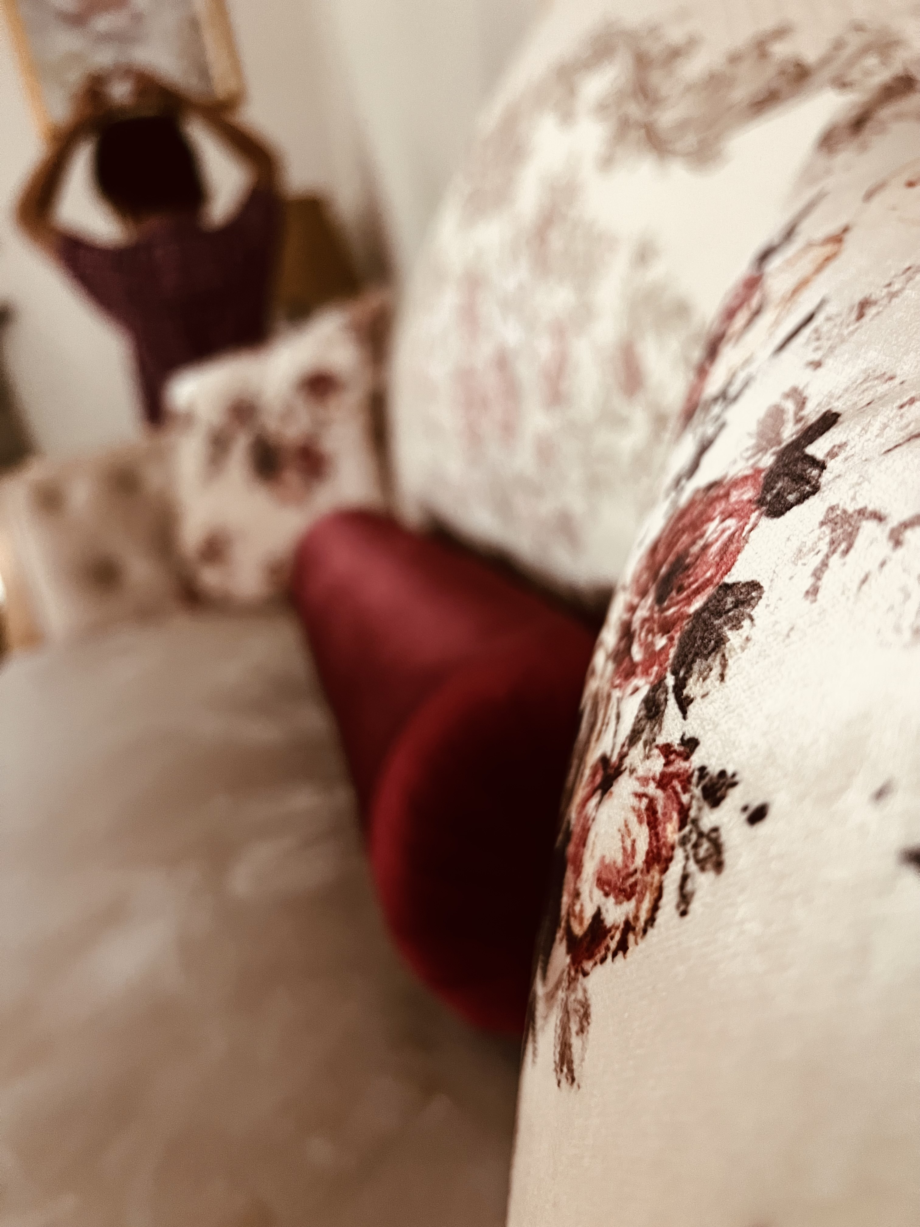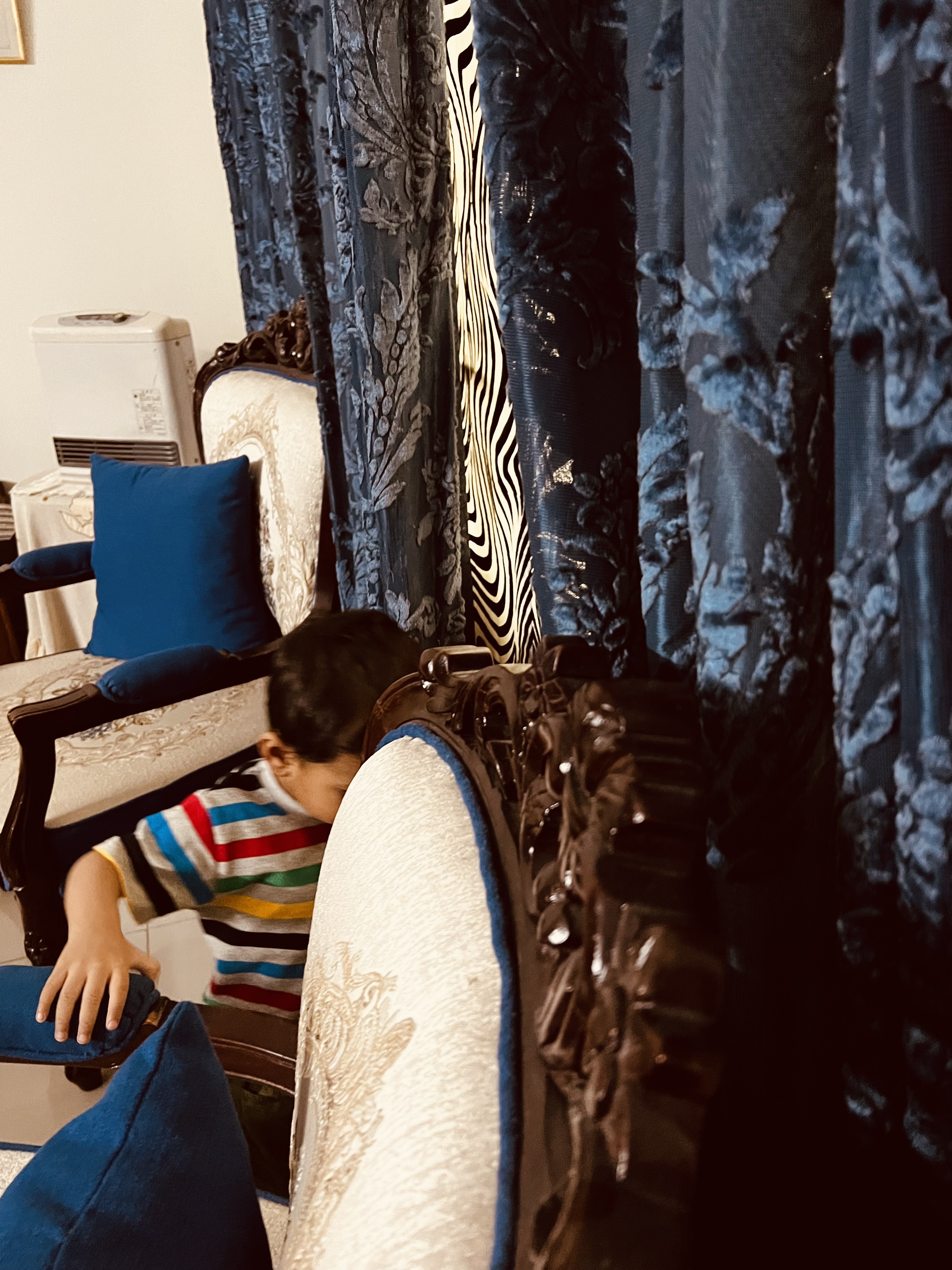 My little niece settling herself up on the chair-back settee